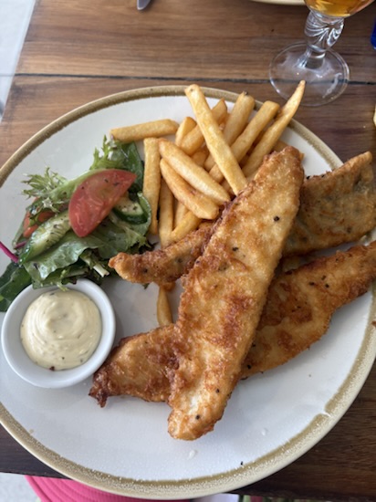 We ate fish and chips at one of the restaurants facing the boardwalk and beach. Barramundi and chips! Love it! Great to eat outside here.