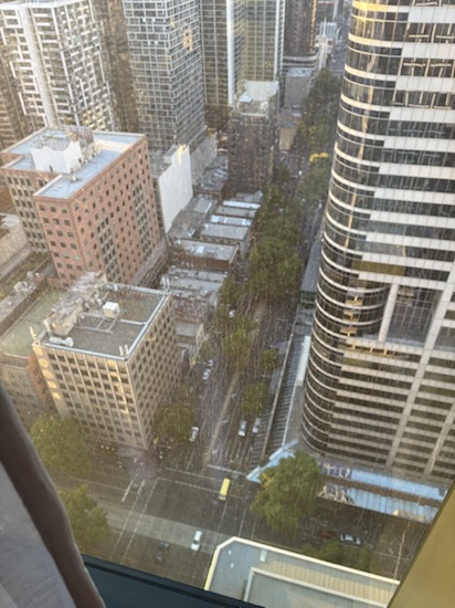 Well, we thought we were high in the sky at our hotel in North Sydney but eek! 36th floor of 55 storey hotel, downtown Melbourne. New hotel. Floor to ceiling windows! 😳 after a few days we are getting used to it.