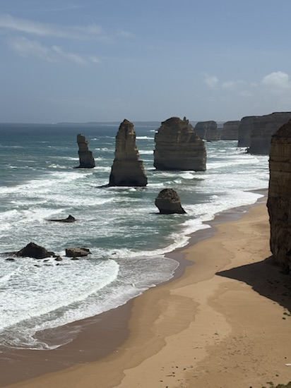 The first place we stopped at was Torquay, just for a beach/ bathroom stop. Surfing Mecca beaches. Headquarters for major surfing equipment companies. Managed to get my feet in the sand for the first time here.