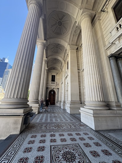 Tuesday was our last day in Melbourne. I spent a little time shopping…. Of course! Then we did take the tourist team (#35) around the city. We travelled as far as the parliament buildings. No tours that day but outside architecture was impressive.