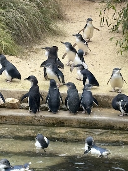 So many varieties large and small. We spent quite a while wandering the maze. One bird enclosure was very interesting. A very loud, black feathered lyrebird called Nova with long tail feathers like a bird of paradise was going through his repertoire of sounds. Apparently they have people want to record him for video games etc. almost sounded like R2D2 a couple of times.